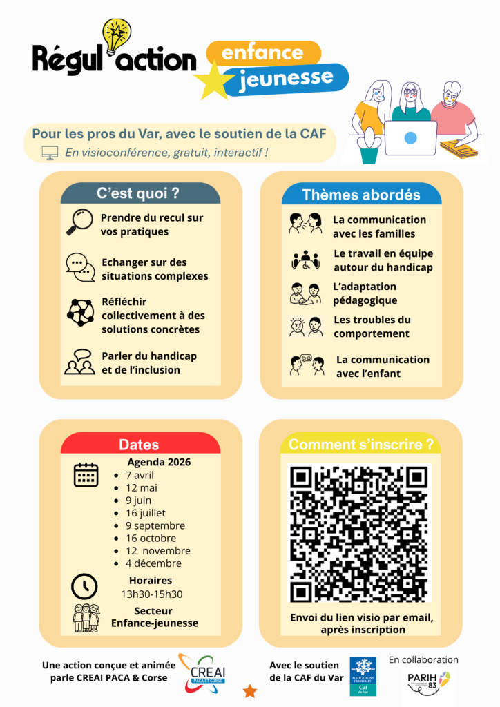 Soutenu par la CAF du Var, c’est gratuit pour vous professionels du Var. La seule condition est de vous inscrire !